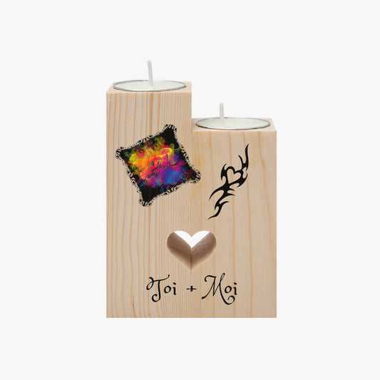Porte bougie rustique en bois LAL avec coeur ❤️